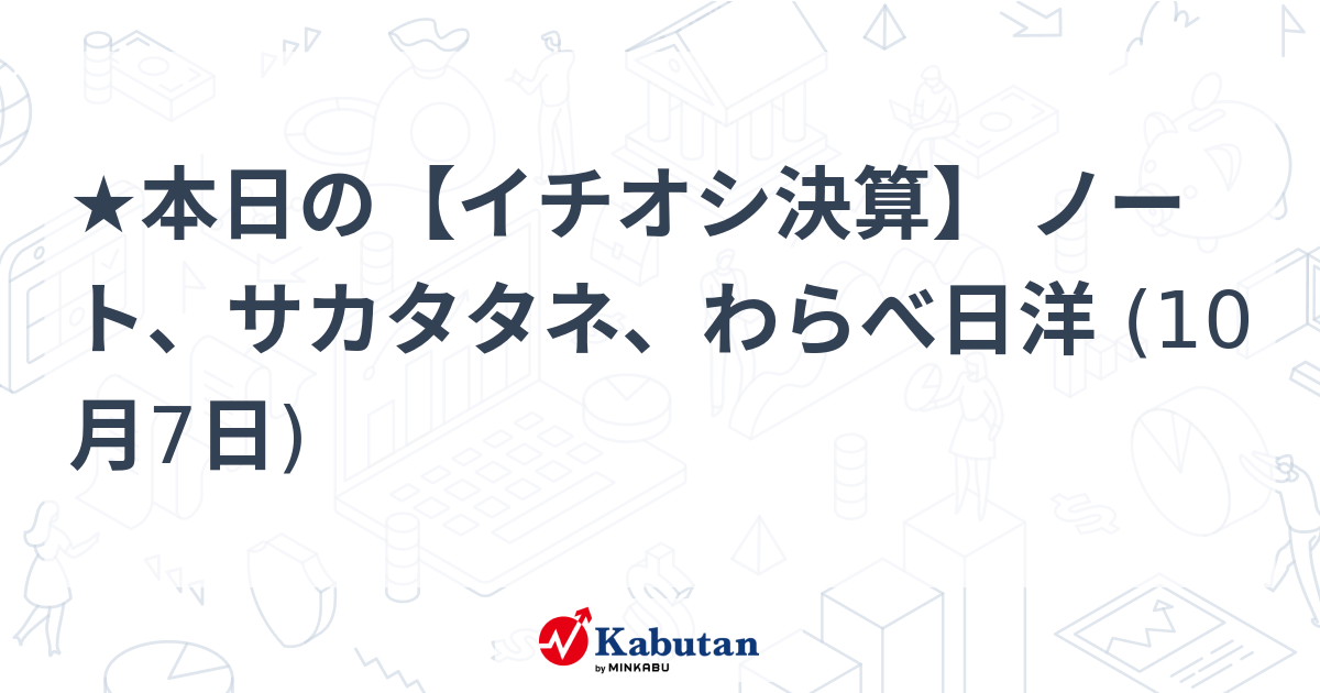 【注目】 ★本日の【イチオシ決算】 ノート、サカタタネ、わらべ日洋 (10月7日)